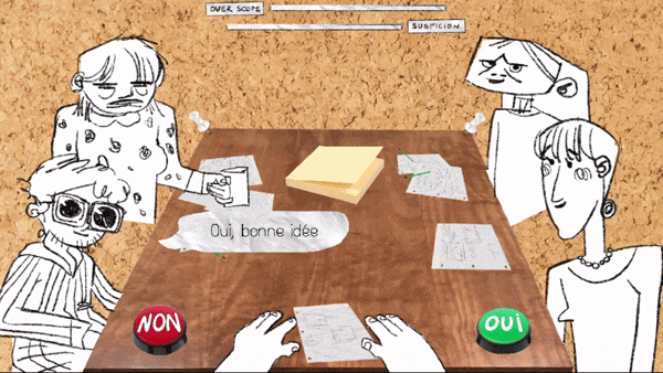 Attention cependant, vos collègues ont encore l’espoir naïf d’arriver à penser un jeu réalisable et ils n’hésiteront pas à vous sortir du groupe si vos véritables intentions sont révélées.